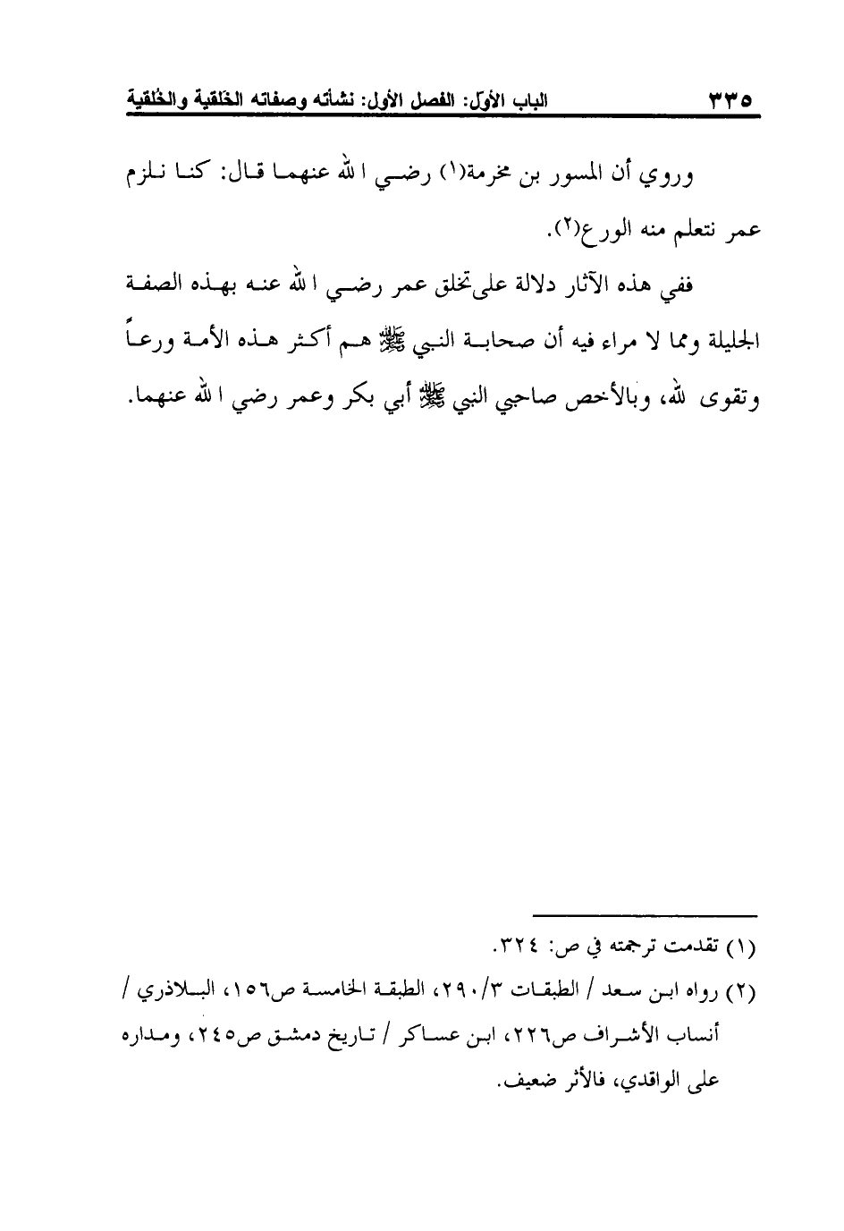 وروي أن المسور بن مخرمة1 رضي الله عنهما قال: كنا نلزم عمر نتعلم منه الورع2.