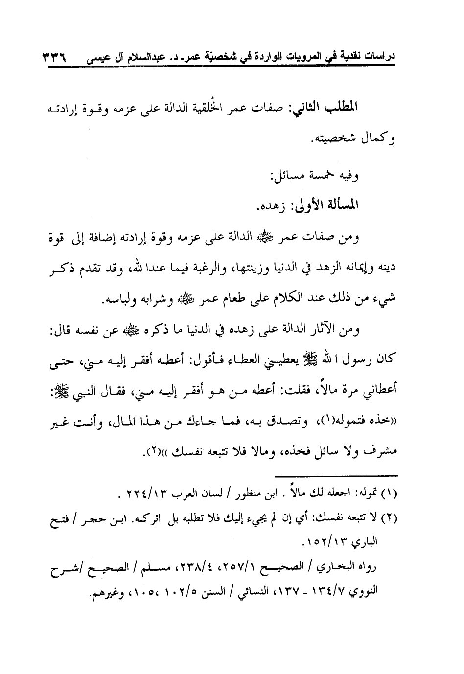 المطلب الثاني: صفات عمر الخُلقية الدالة على عزمه وقوة إرادته وكمال شخصيته.