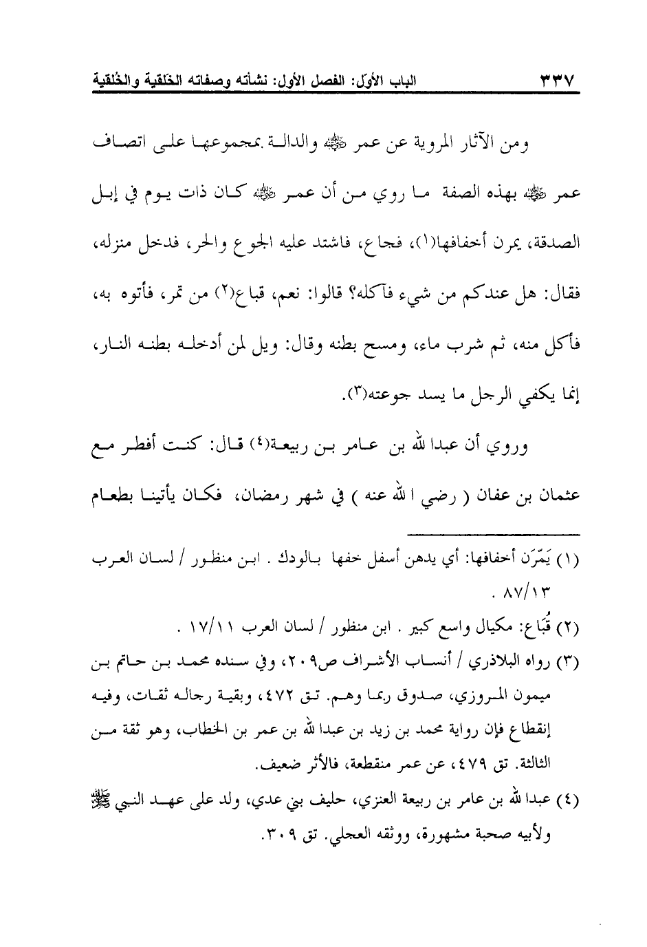 3 رواه البلاذري / أنساب الأشراف ص209، وفي سنده محمد بن حاتم بن ميمون المروزي، صدوق ربما وهم. تق 472، وبقية رجاله ثقات، وفيه إنقطاع فإن رواية محمد بن زيد بن عبد الله بن عمر بن الخطاب، وهو ثقة من الثالثة. تق 479، عن عمر منقطعة، فالأثر ضعيف.