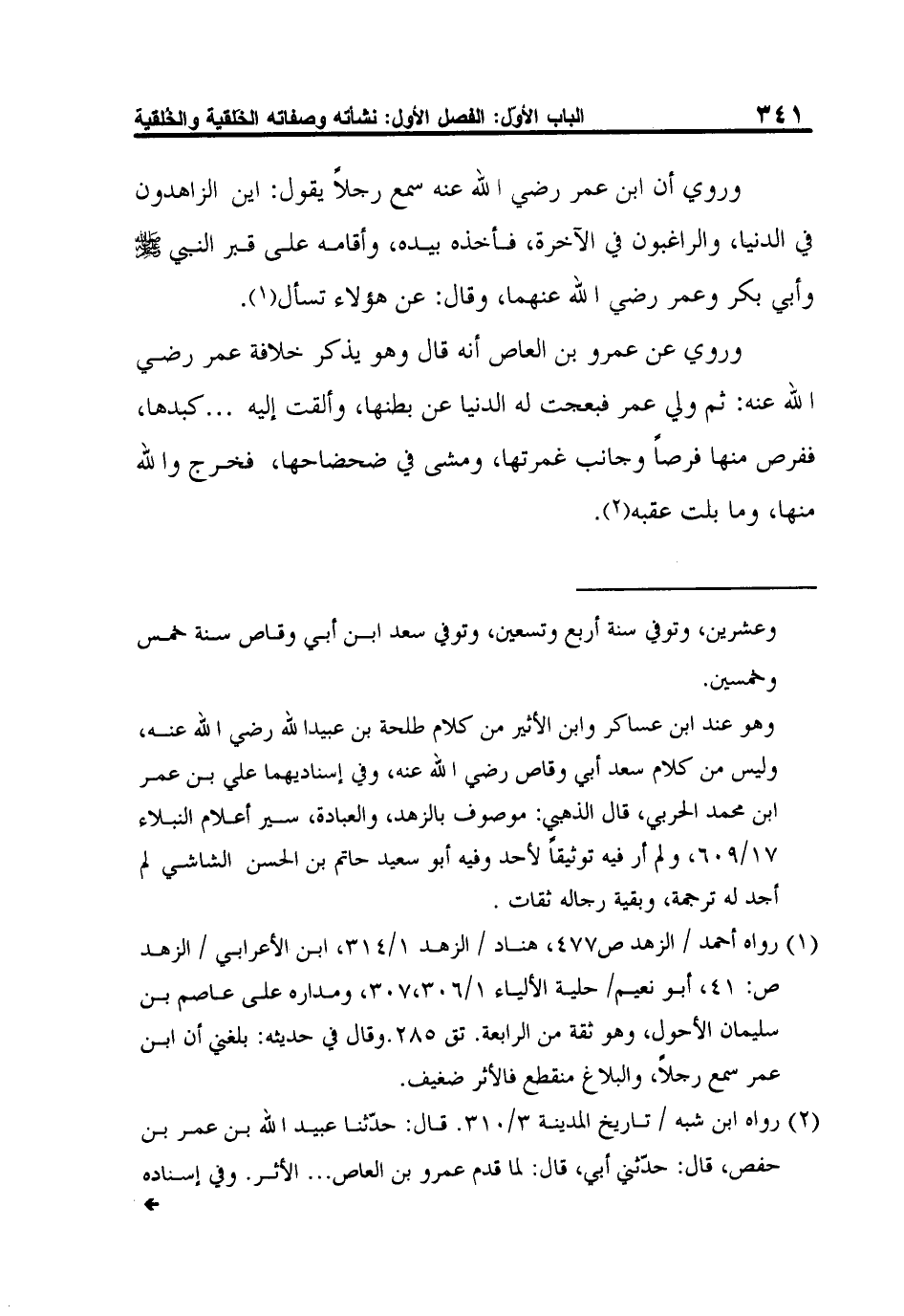 1 رواه أحمد / الزهد ص477، هناد / الزهد 1/314، ابن الأعرابي / الزهد ص: 41، أبو نعيم/ حلية الألياء 1/306،307، ومداره على عاصم بن سليمان الأحول، وهو ثقة من الرابعة. تق 285.وقال في حديثه: بلغني أن ابن عمر سمع رجلاً، والبلاغ منقطع فالأثر ضعيف.
