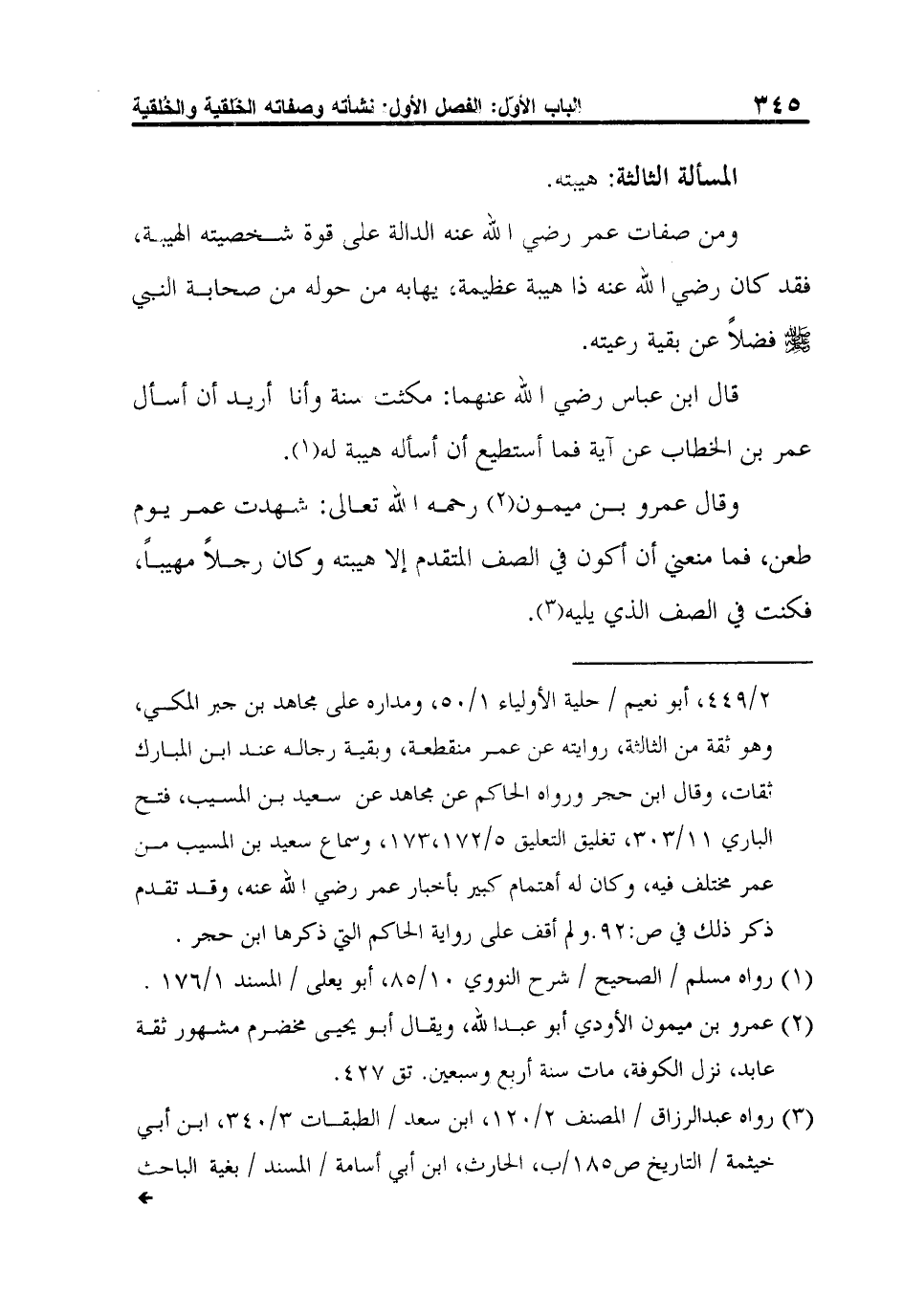 وقال عمرو بن ميمون2 رحمه الله تعالى: شهدت عمر يوم طعن، فما منعني أن أكون في الصف المتقدم إلا هيبته وكان رجلاً مهيباً، فكنت في الصف الذي يليه3.