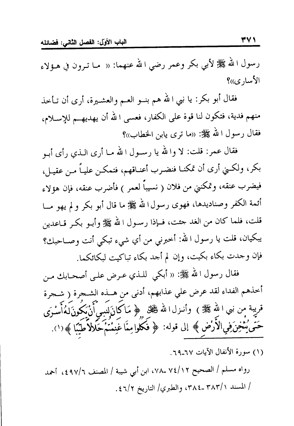 رسول الله صلى الله عليه وسلم لأبي بكر وعمر رضي الله عنهما: "ما ترون في هؤلاء الأسارى"؟