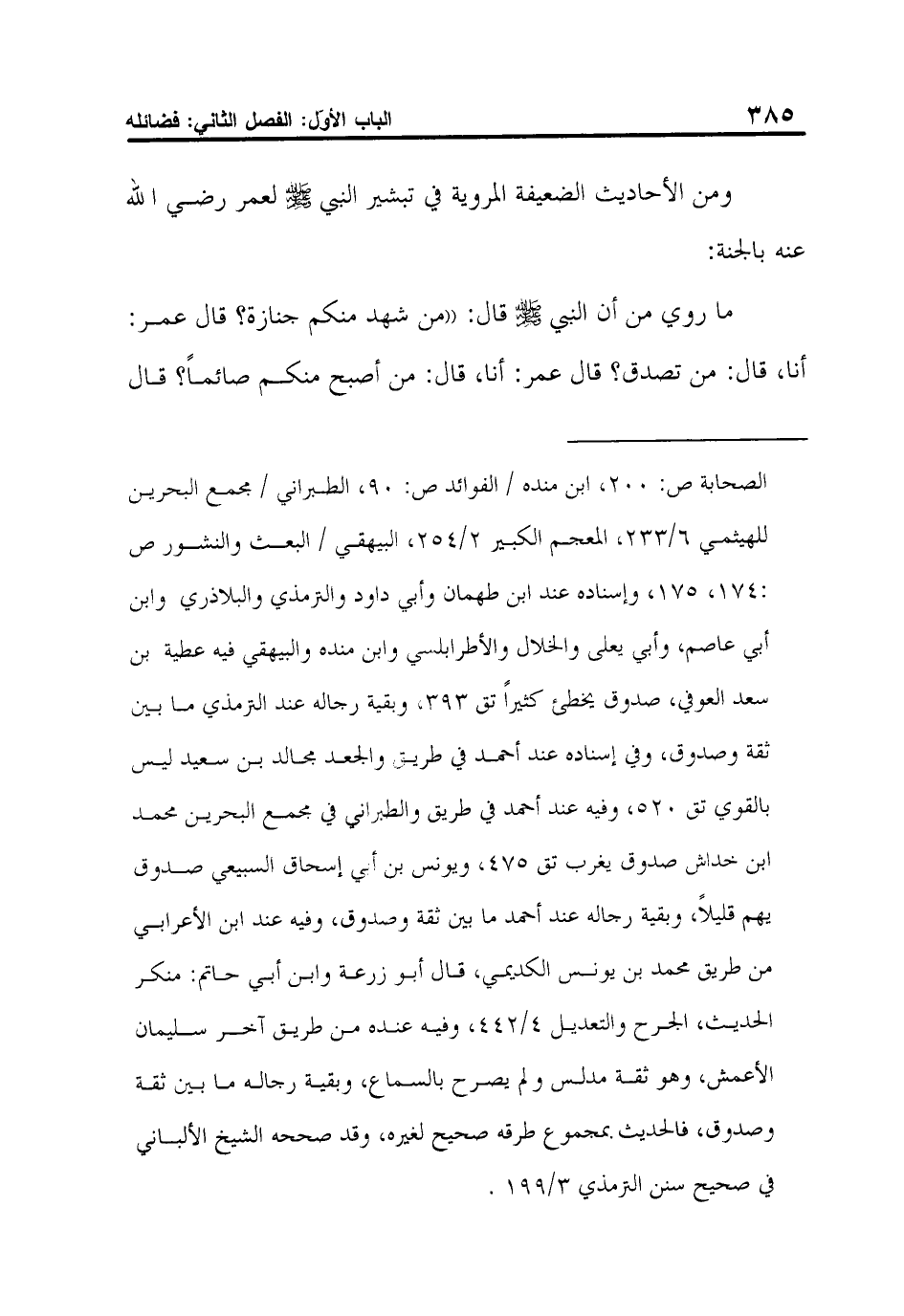 الصحابة ص: 200، ابن منده / الفوائد ص: 90، الطبراني / مجمع البحرين للهيثمي 6/233، المعجم الكبير 2/254، البيهقي / البعث والنشور ص:174، 175، وإسناده عند ابن طهمان وأبي داود والترمذي والبلاذري وابن أبي عاصم، وأبي يعلى والخلال والأطرابلسي وابن منده والبيهقي فيه عطية بن سعد العوفي، صدوق يخطئ كثيراً تق 393، وبقية رجاله عند الترمذي ما بين ثقة وصدوق، وفي إسناده عند أحمد في طريق والجعد مجالد بن سعيد ليس بالقوي تق 520، وفيه عند أحمد في طريق والطبراني في مجمع البحرين محمد ابن خداش صدوق يغرب تق 475، ويونس بن أبي إسحاق السبيعي صدوق يهم قليلاً، وبقية رجاله عند أحمد ما بين ثقة وصدوق، وفيه عند ابن الأعرابي من طريق محمد بن يونس الكديمي، قال أبو زرعة وابن أبي حاتم: منكر الحديث، الجرح والتعديل 4/442، وفيه عنده من طريق آخر سليمان الأعمش، وهو ثقة مدلس ولم يصرح بالسماع، وبقية رجاله ما بين ثقة وصدوق، فالحديث بمجموع طرقه صحيح لغيره، وقد صححه الشيخ الألباني في صحيح سنن الترمذي 3/199.