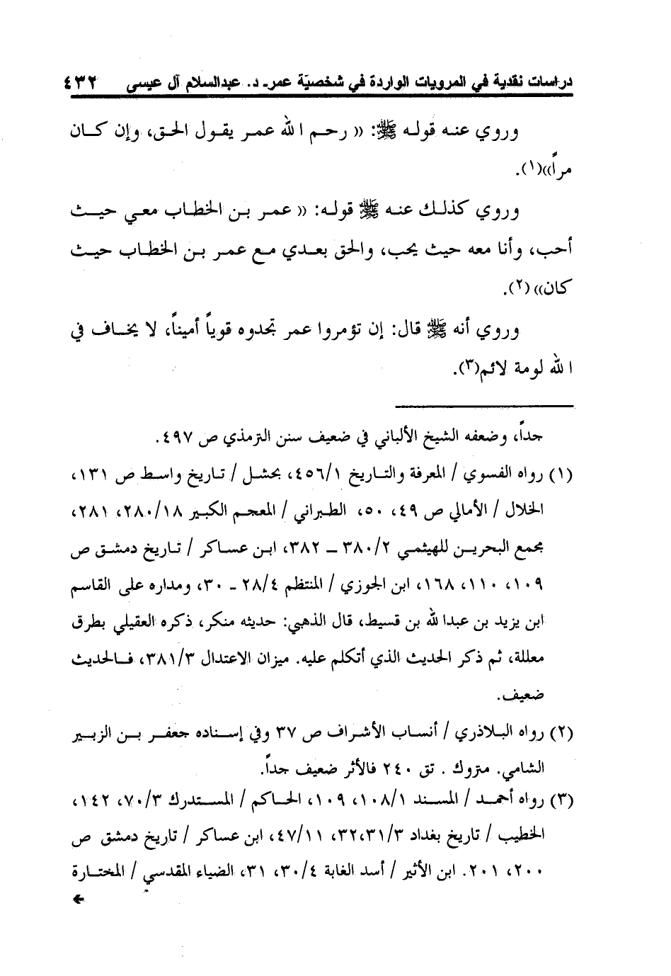 كتاب دراسة نقدية في المرويات الواردة في شخصية عمر بن الخطاب وسياسته الإدارية رضي الله عنه (اسم الجزء: 1)