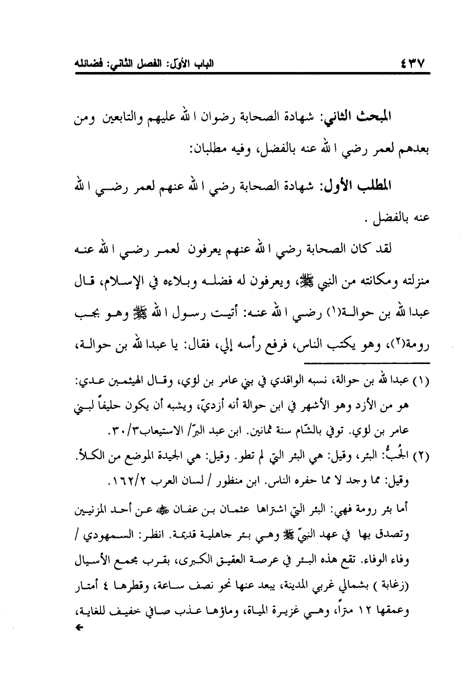 المطلب الأول: شهادة الصحابة رضي الله عنهم لعمر رضي الله عنه بالفضل.