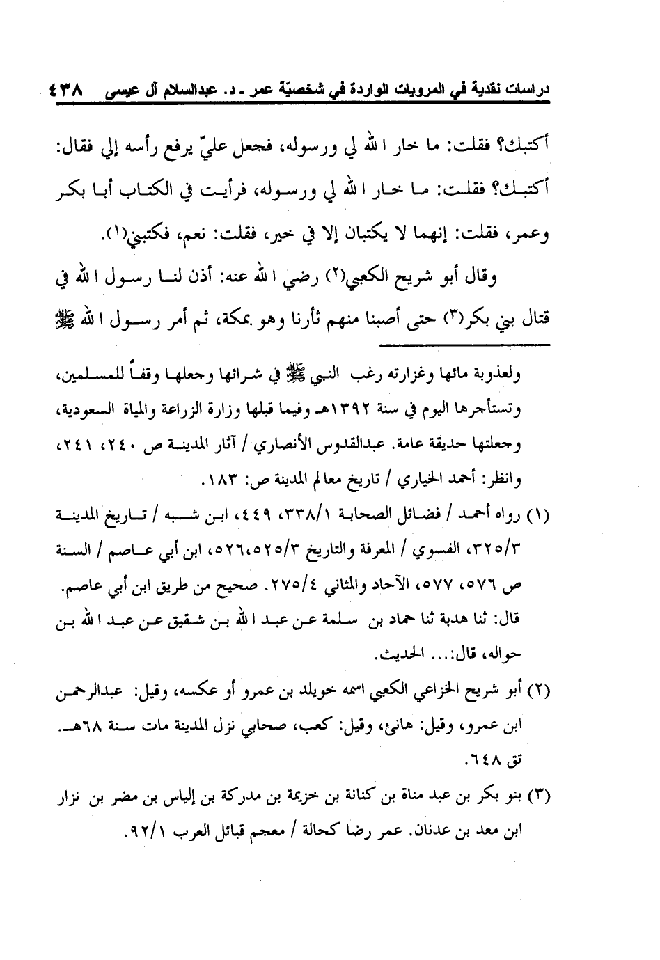 1 رواه أحمد / فضائل الصحابة 1/338، 449، ابن شبه / تاريخ المدينة 3/325، الفسوي / المعرفة والتاريخ 3/525،526، ابن أبي عاصم / السنة ص 576، 577، الآحاد والمثاني 4/275. صحيح من طريق ابن أبي عاصم.