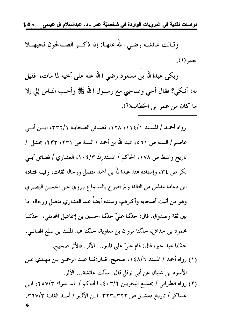 2 رواه الطبراني / مجمع البحرين 2/403، الحاكم / المستدرك 3/257، ابن عساكر / تاريخ دمشق ص 322-323. ابن الأثير / أسد الغابة 3/367. ومدار الأثر على محمّد بن ربيعة الكلابي وثقه ابن معين وأبو داود. وقال ابن حجر: صدوق تق: 478. وبقية رجاله عند الحاكم ثقات. فالأثر صحيح.