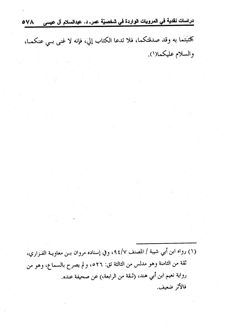 1 رواه ابن أبي شيبة / المصنف 7/94، وفي إسناده مروان بن معاوية الفزاري، ثقة من الثامنة وهو مدلس من الثالثة تق: 526، ولم يصرح بالسماع، وهو من رواية نعيم ابن أبي هند، (ثقة من الرابعة،) عن صحيفة عنده.