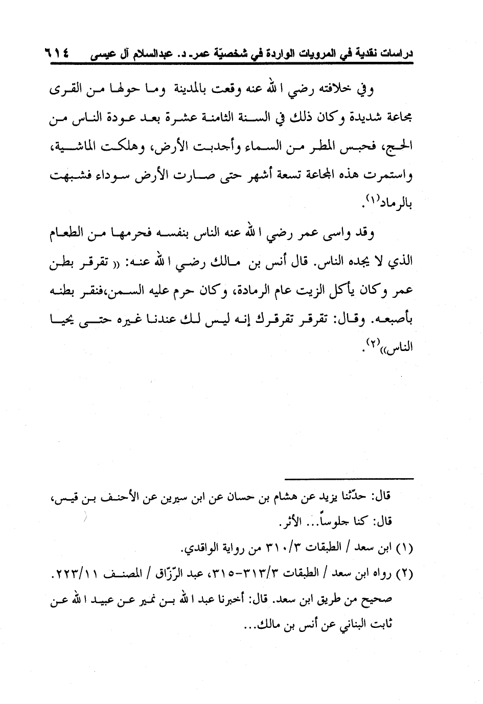 2 رواه ابن سعد / الطبقات 3/313-315، عبد الرّزّاق / المصنف 11/223. صحيح من طريق ابن سعد. قال: أخبرنا عبد الله بن نمير عن عبيد الله عن ثابت البناني عن أنس بن مالك ...