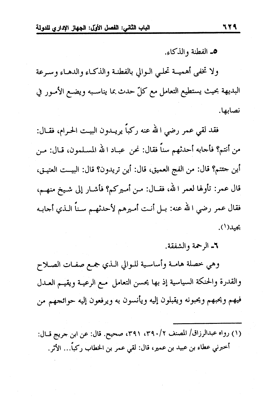 ولا تخفى أهمية تحلي الوالي بالفطنة والذكاء والدهاء وسرعة البديهة بحيث يستطيع التعامل مع كلّ حدث بما يناسبه ويضع الأمور في نصابها.