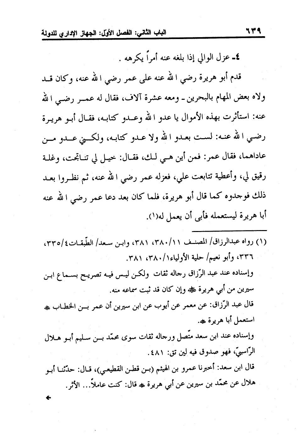 قال ابن سعد: أخبرنا عمرو بن الهيثم (بن قطن القطيعي) ، قال: حدّثنا أبو هلال عن محمّد بن سيرين عن أبي هريرة رضي الله عنه قال: كنت عاملاً ... الأثر.
