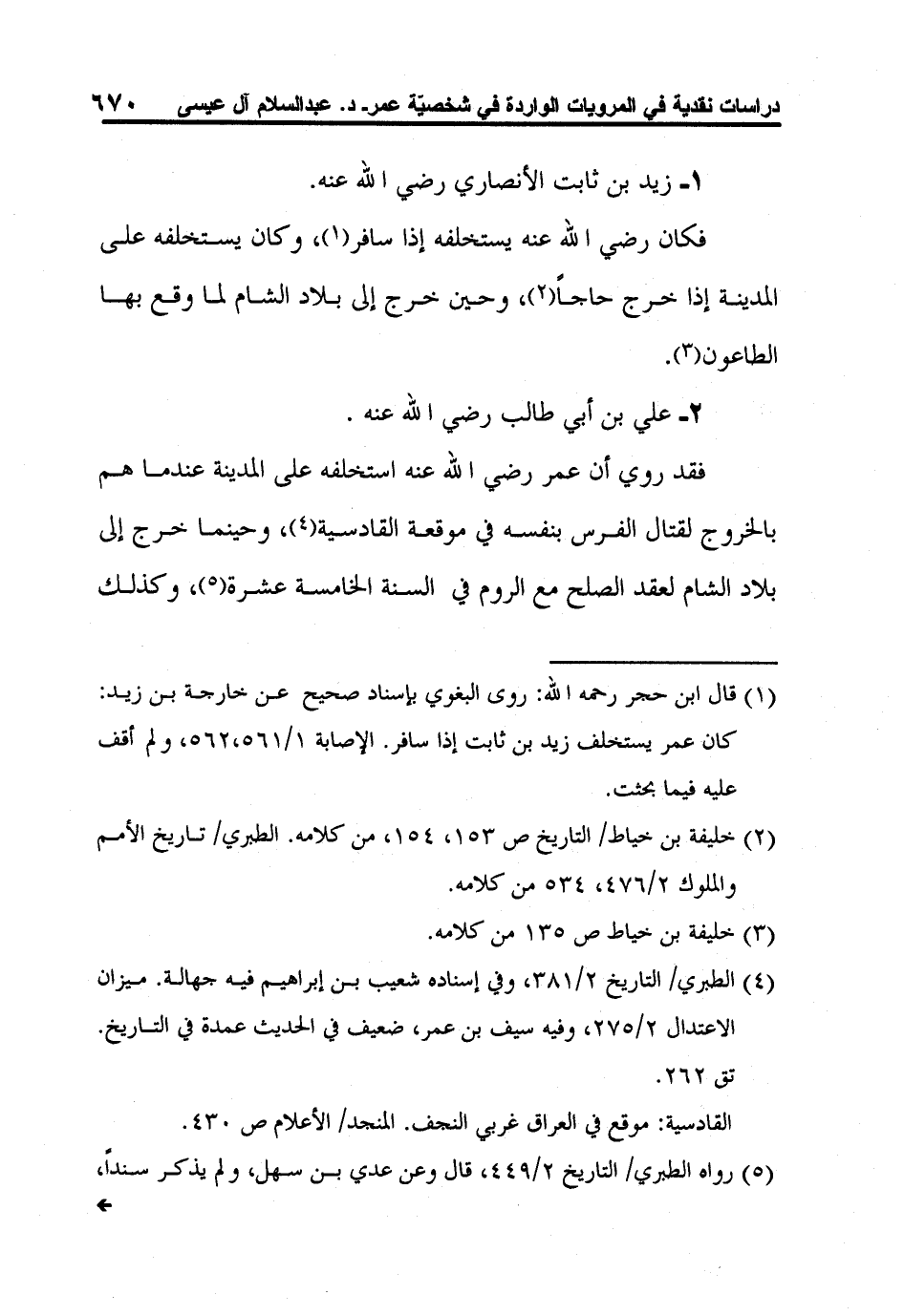 1 قال ابن حجر رحمه الله: روى البغوي بإسناد صحيح عن خارجة بن زيد: كان عمر يستخلف زيد بن ثابت إذا سافر. الإصابة 1/561،562، ولم أقف عليه فيما بحثت.