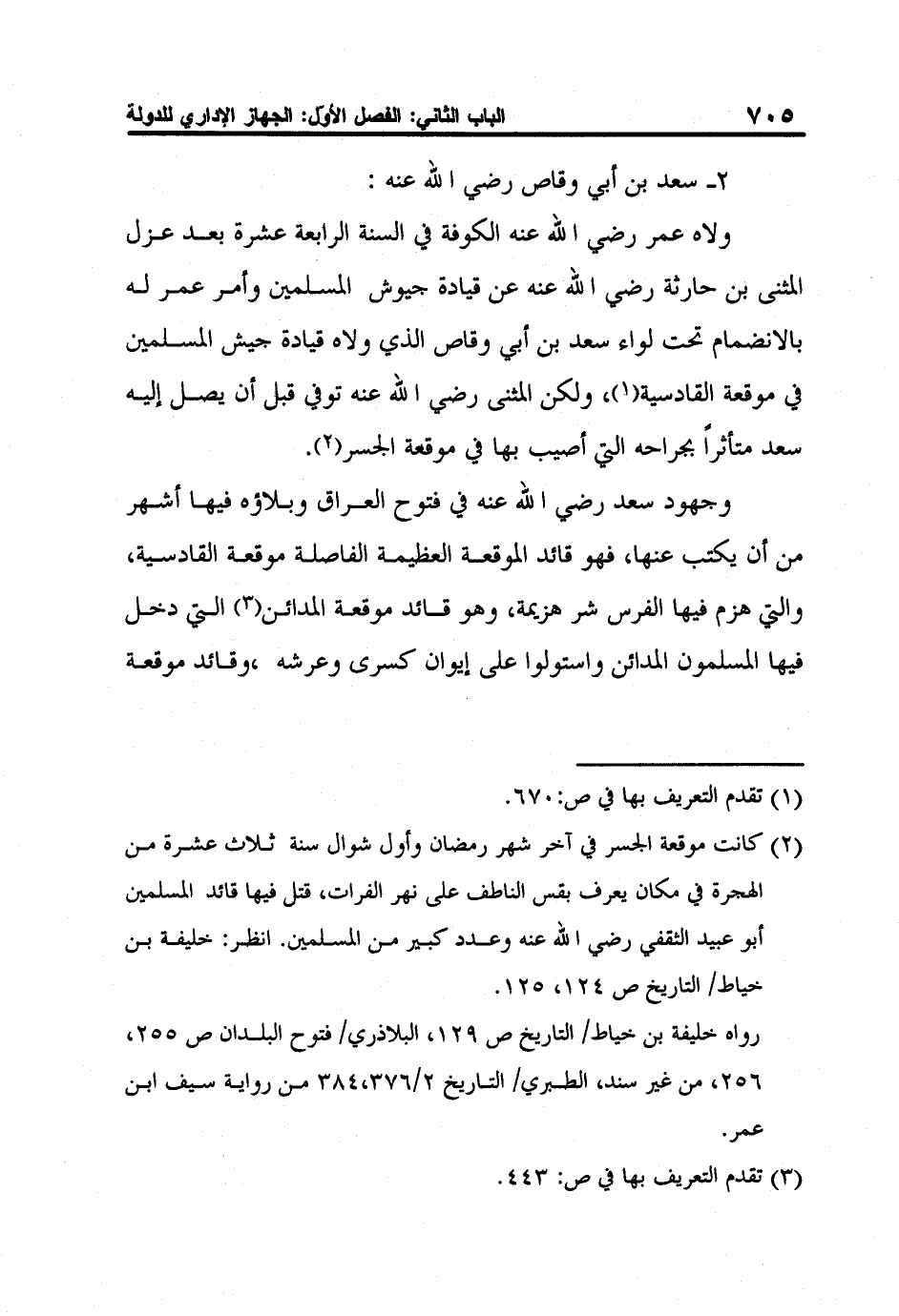 2 كانت موقعة الجسر في آخر شهر رمضان وأول شوال سنة ثلاث عشرة من الهجرة في مكان يعرف بقس الناطف على نهر الفرات، قتل فيها قائد المسلمين أبو عبيد الثقفي رضي الله عنه وعدد كبير من المسلمين. انظر: خليفة بن خياط/ التاريخ ص 124، 125.