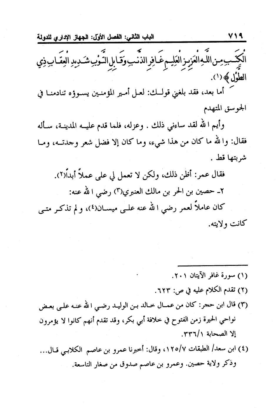 4 ابن سعد/ الطبقات 7/125، وقال: أخبرنا عمرو بن عاصم الكلابي قال ... وذكر ولاية حصين. وعمرو بن عاصم صدوق من صغار التاسعة.