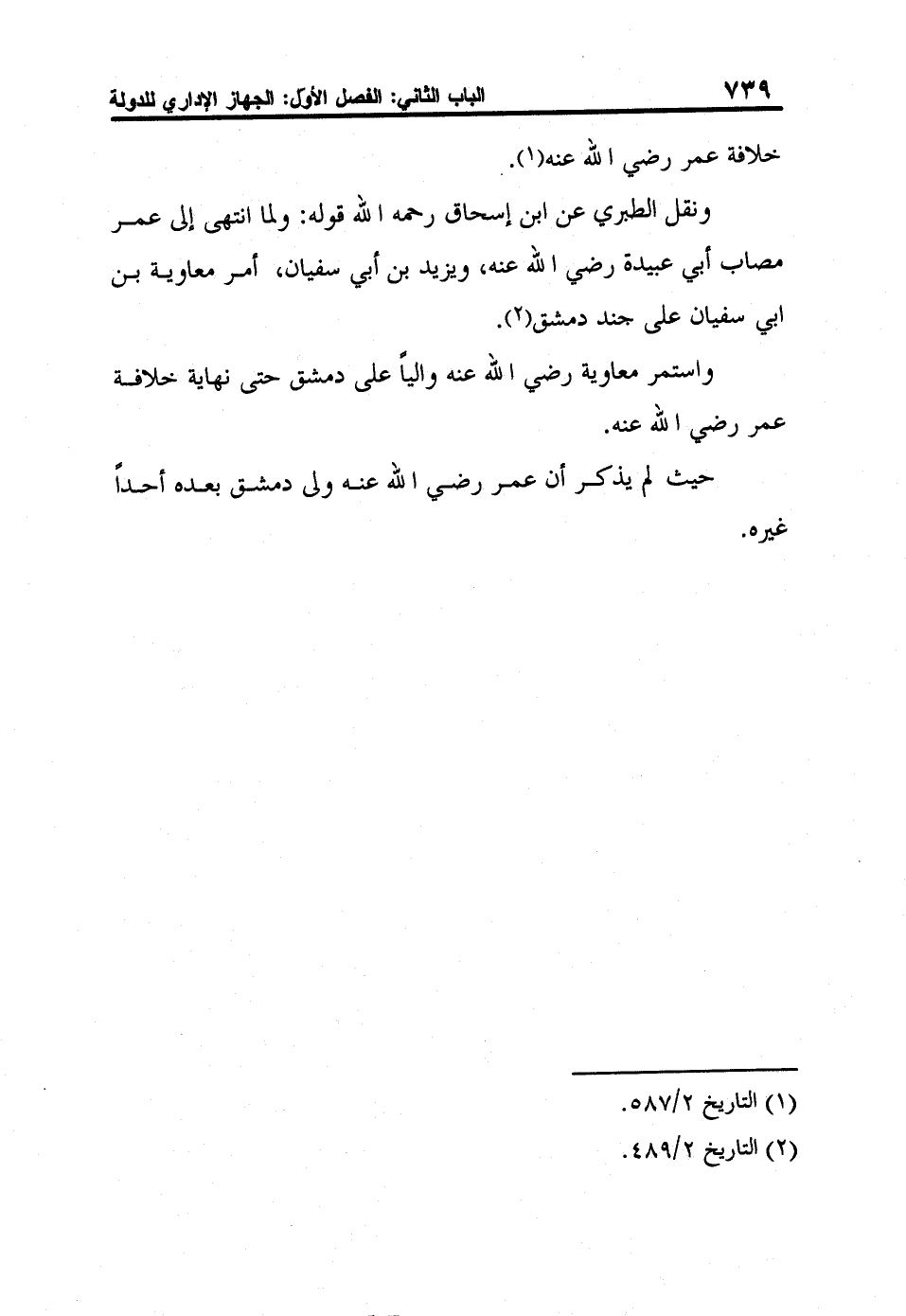 ونقل الطبري عن ابن إسحاق رحمه الله قوله: ولما انتهى إلى عمر مصاب أبي عبيدة رضي الله عنه، ويزيد بن أبي سفيان، أمر معاوية بن ابي سفيان على جند دمشق2.