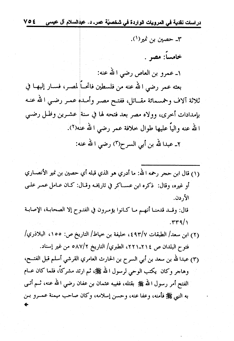 قال: وقد قدمنا أنهم ما كانوا يؤمرون في الفتوح إلا الصحابة، الإصابة 1/339.