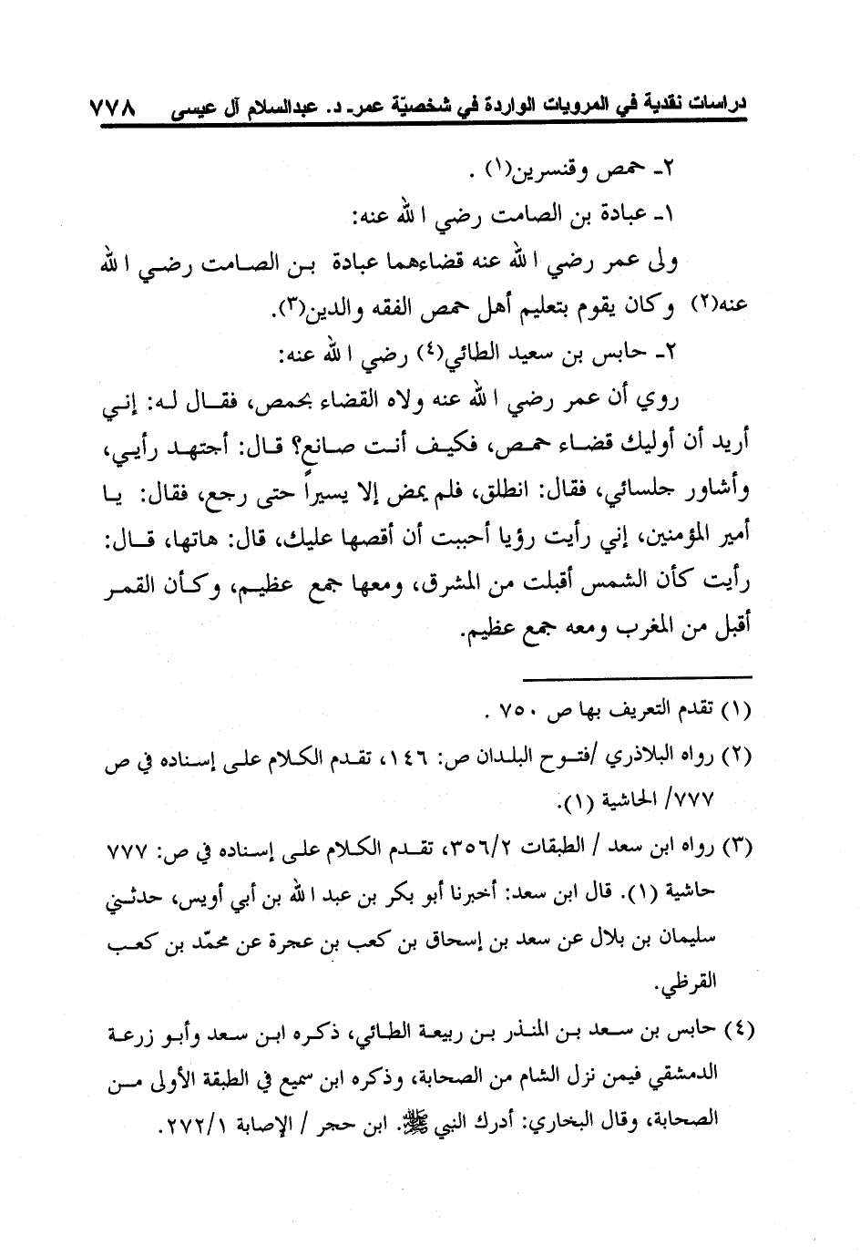 4 حابس بن سعد بن المنذر بن ربيعة الطائي، ذكره ابن سعد وأبو زرعة الدمشقي فيمن نزل الشام من الصحابة، وذكره ابن سميع في الطبقة الأولى من الصحابة، وقال البخاري: أدرك النبي صلى الله عليه وسلم. ابن حجر / الإصابة 1/272.