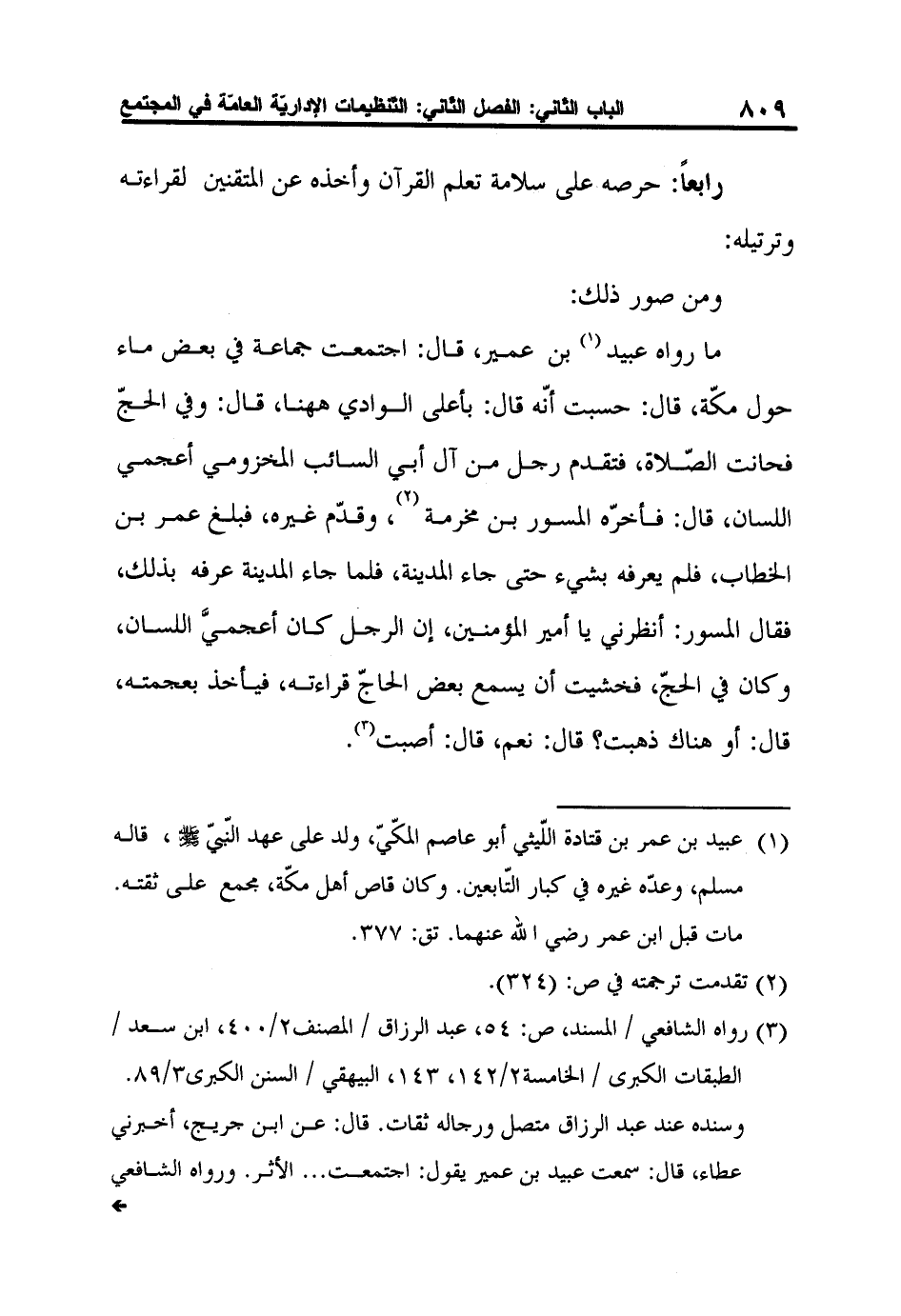 3 رواه الشافعي / المسند، ص: 54، عبد الرزاق / المصنف2/400، ابن سعد / الطبقات الكبرى / الخامسة2/142، 143، البيهقي / السنن الكبرى3/89.