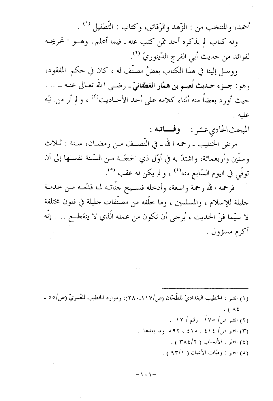 (¬1) انظر: الخطيب البغداديّ للطّحّان (ص/117- 280) ، وموارد الخطيب للعُمريّ (ص/55- 84) .