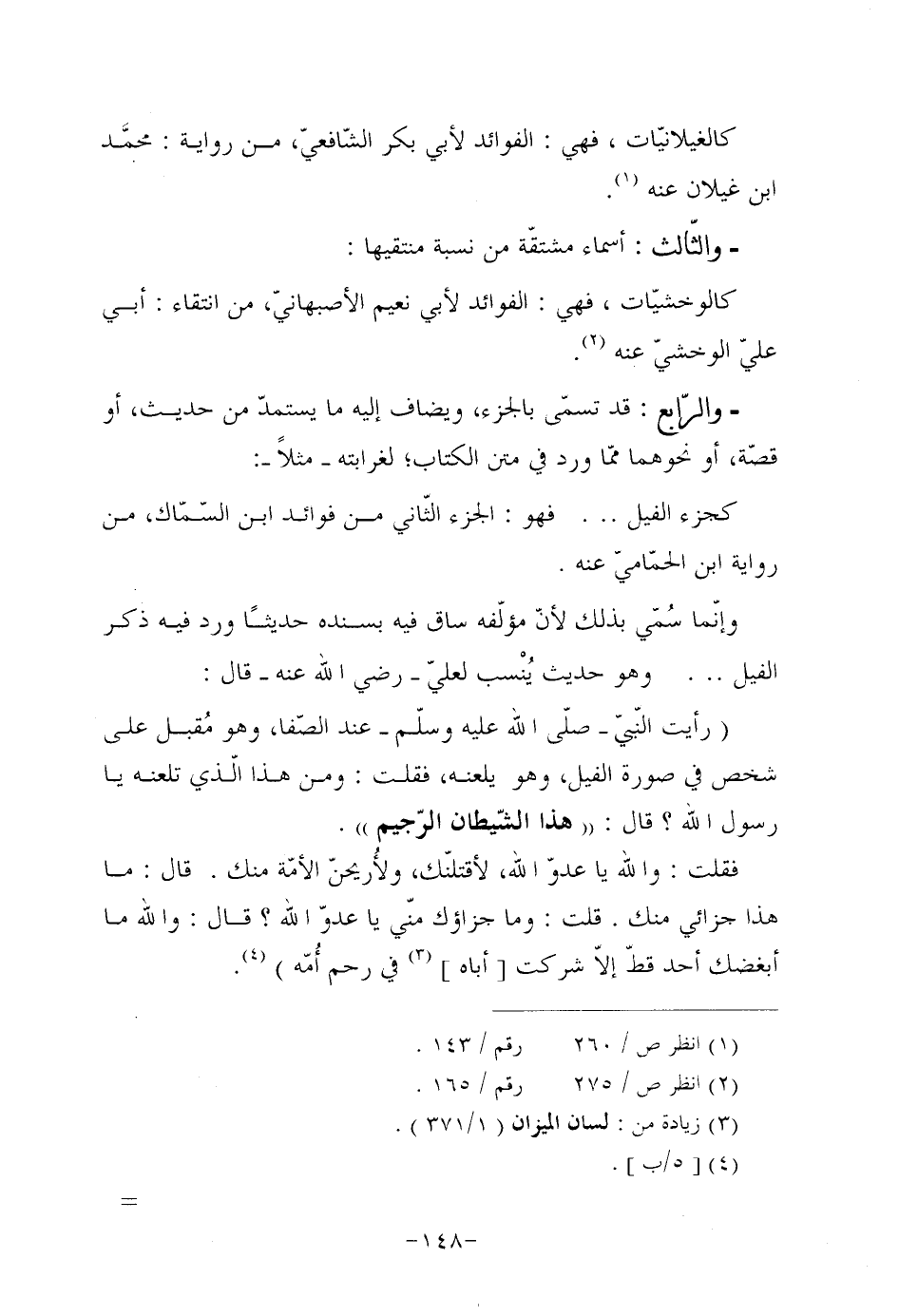 والرّابع: قد تسمّى بالجزء، ويضاف إليه ما يستمدّ من حديث، أو قصّة، أو نحوهما ممّا ورد في متن الكتاب؛ لغرابته مثلاً: