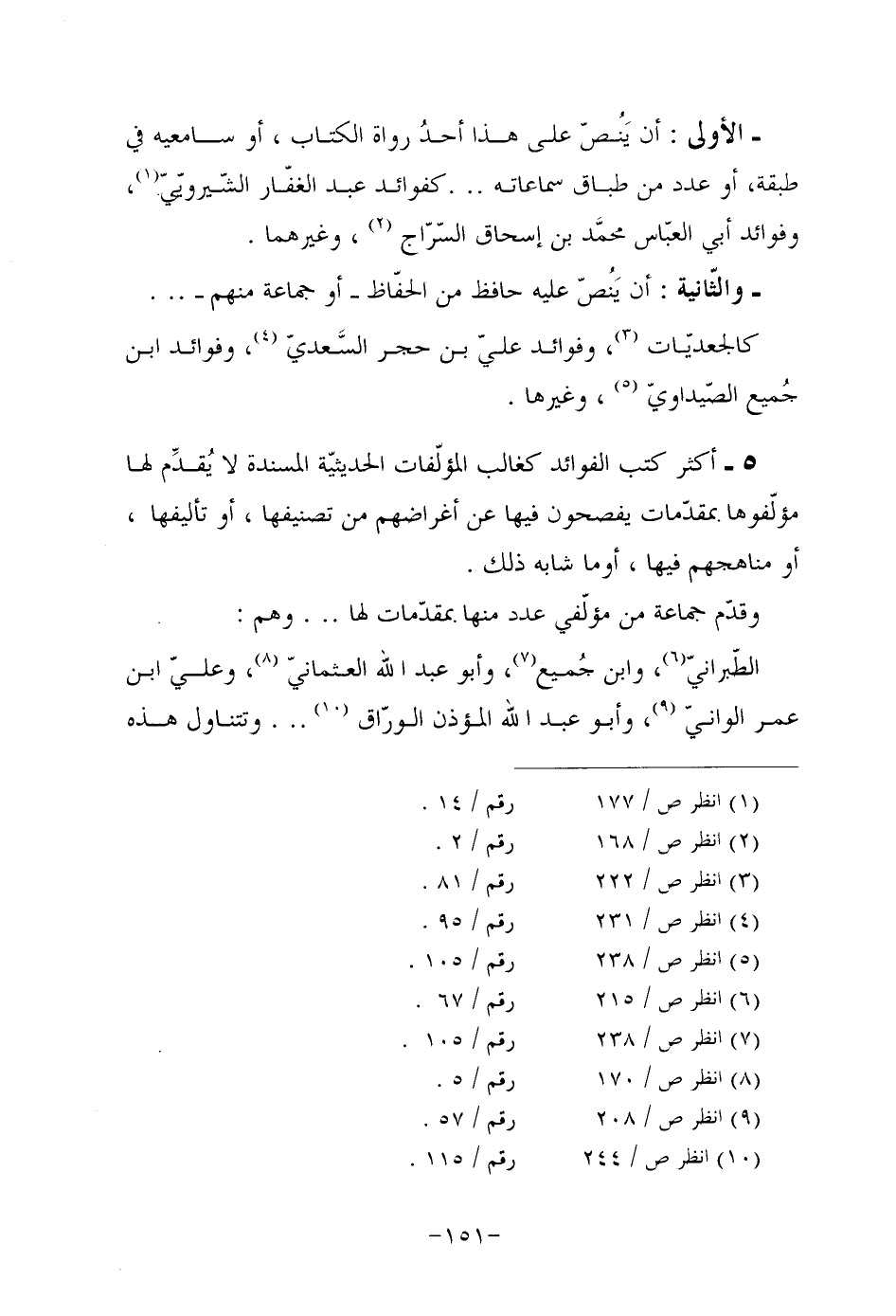 الأولى: أن يَنُصّ على هذا أحدُ رواة الكتاب، أو سامعيه في طبقة، أو عدد من طباق سماعاته ... كفوائد عبد الغفّار الشّيرويّيّ (¬1) ، وفوائد أبي العبّاس محمَّد بن إسحاق السّرّاج (¬2) ، وغيرهما.