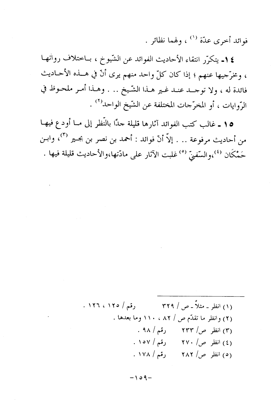 15- غالب كتب الفوائد آثارها قليلة جدًا بالنّظر إلى ما أودع فيها من أحاديث مرفوعة ... إلاّ أنّ فوائد: أحمد بن نصر بن بجير (¬3) ، وابن حَمْكَان (¬4) ، والسّفنيّ (¬5) غلبت الآثار على مادّتها، والأحاديث قليلة فيها.