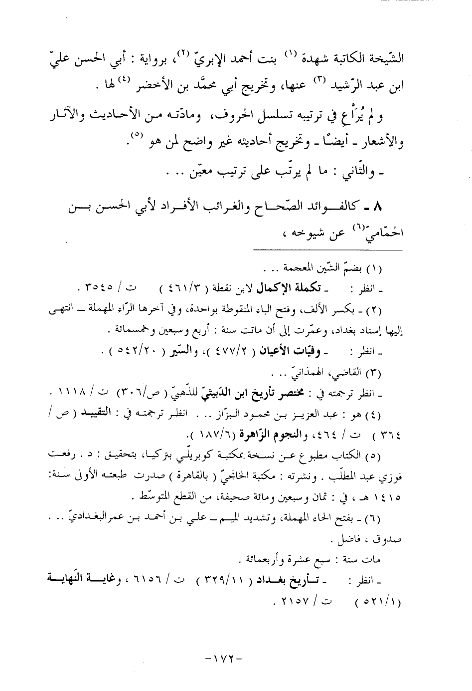 (¬2) بكسر الألف، وفتح الباء المنقوطة بواحدة، وفي آخرها الرّاء المهملة انتهى إليها إسناد بغداد، وعمّرت إلى أن ماتت سنة: أربع وسبعين وخمسمائة.