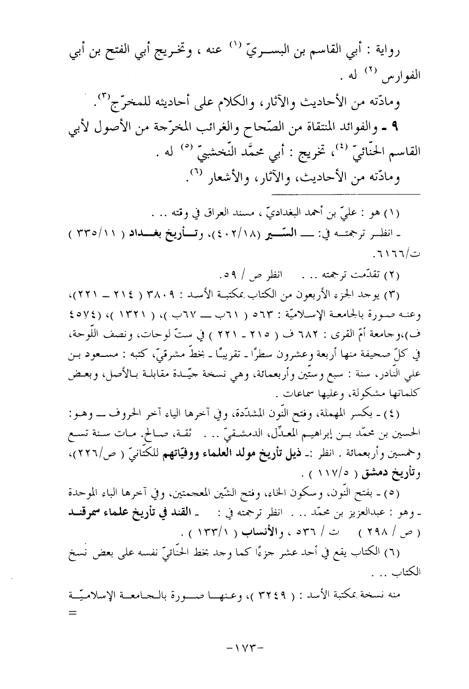 (¬5) بفتح النّون، وسكون الخاء، وفتح الشّين المعجمتين، وفي آخرها الباء الموحدة وهو: عبد العزيز بن محمّد ... انظر ترجمته في: القند في تأريخ علماء سمرقند (ص/298) ت/536، والأنساب (1/133) .