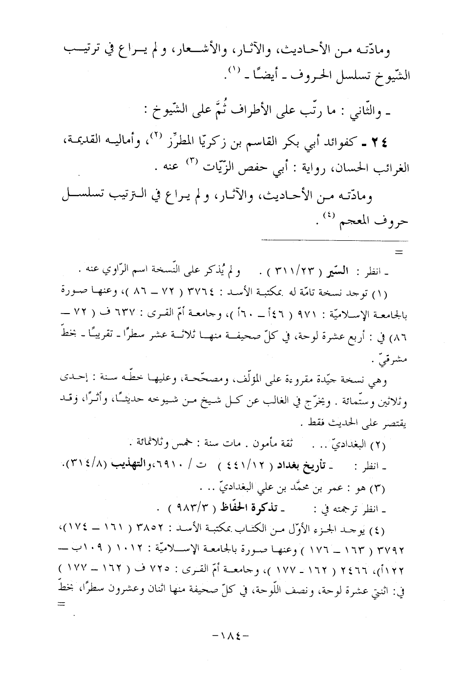 24- كفوائد أبي بكر القاسم بن زكريّا المطرِّز (¬2) ، وأماليه القديمة، الغرائب الحسان، رواية: أبي حفص الزّيّات (¬3) عنه.