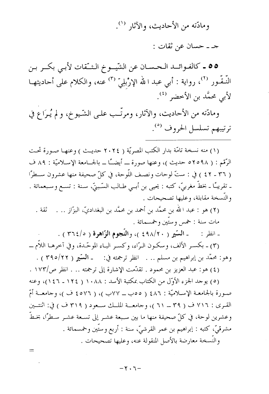 55- كالفوائد الحسان عن الشّيوخ الثقات لأبي بكر بن النّقّور (¬2) ، رواية: أبي عبد الله الإرْبِلِيّ (¬3) عنه، والكلام على أحاديثها لأبي محمَّد بن الأخضر (¬4) . ومادّته من الأحاديث، والآثار، ومرتّب على الشّيوخ، ولم يُرَاع في ترتيبهم تسلسل الحروف (¬5) .