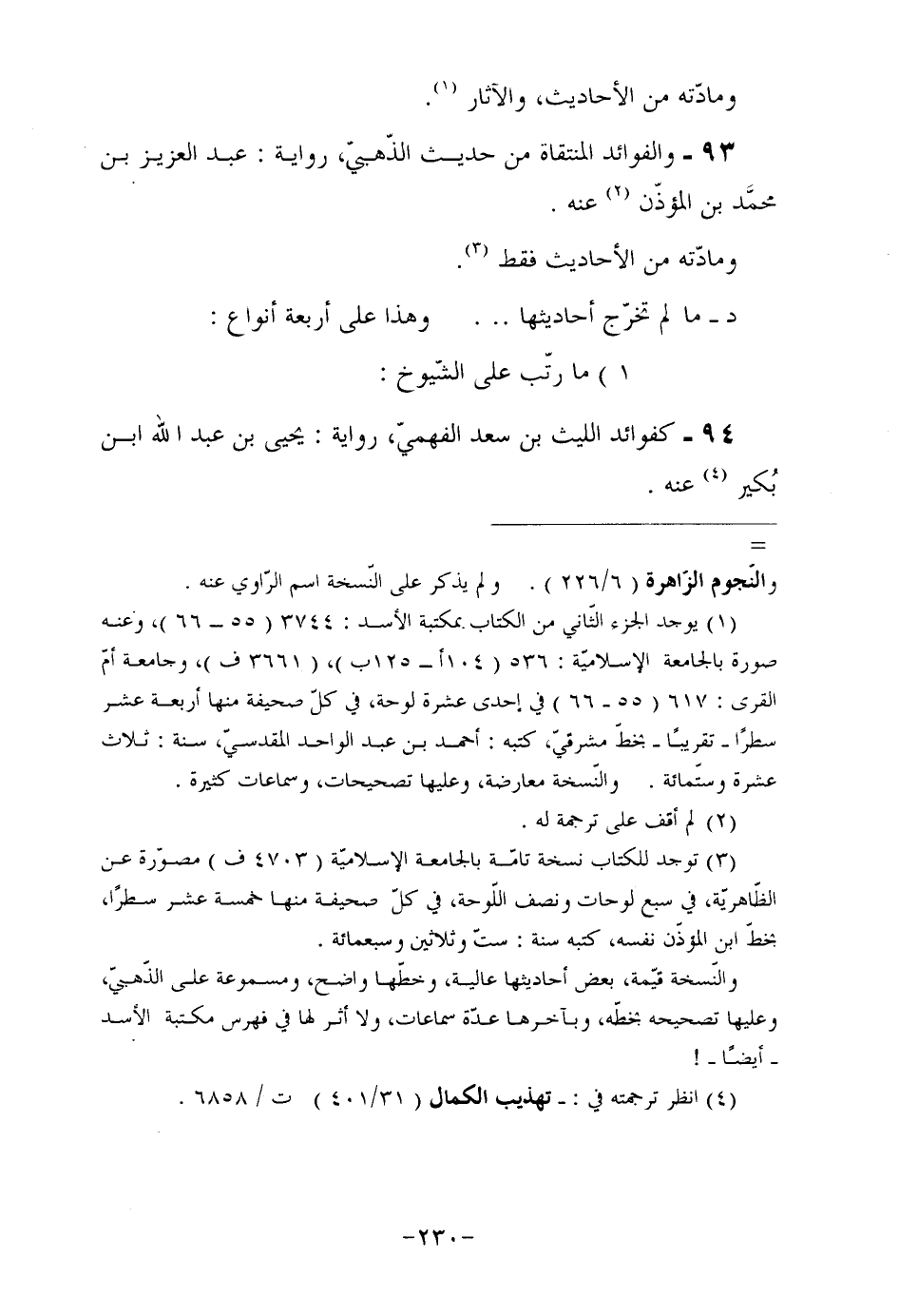 (¬1) يوجد الجزء الثّاني من الكتاب بمكتبة الأسد: 3744 (55- 66) ، وعنه صورة بالجامعة الإسلاميّة: 536 (104أ- 125ب) ، (3661 ف) ، وجامعة أمّ القرى: 617 (55- 66) في إحدى عشرة لوحة، في كلّ صحيفة منها أربعة عشر سطرًا تقريبا بخطّ مشرقيّ، كتبه: أحمد بن عبد الواحد المقدسيّ، سنة: ثلاث عشرة وستّمائة. والنّسخة معارضة، وعليها تصحيحات، وسماعات كثيرة.