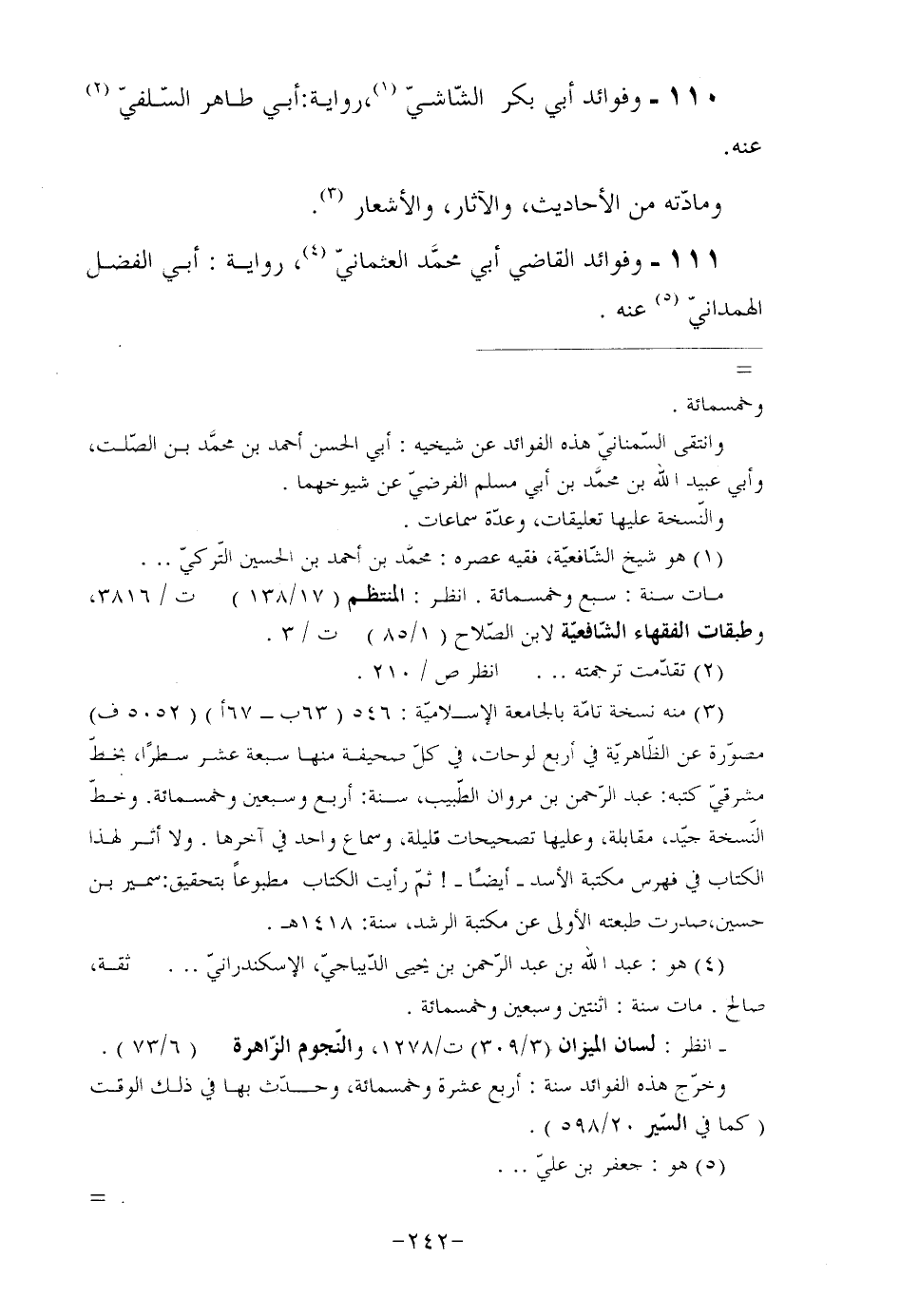 111- وفوائد القاضي أبي محمَّد العثمانيّ (¬4) ، رواية: أبي الفضل الهمدانيّ (¬5) عنه.