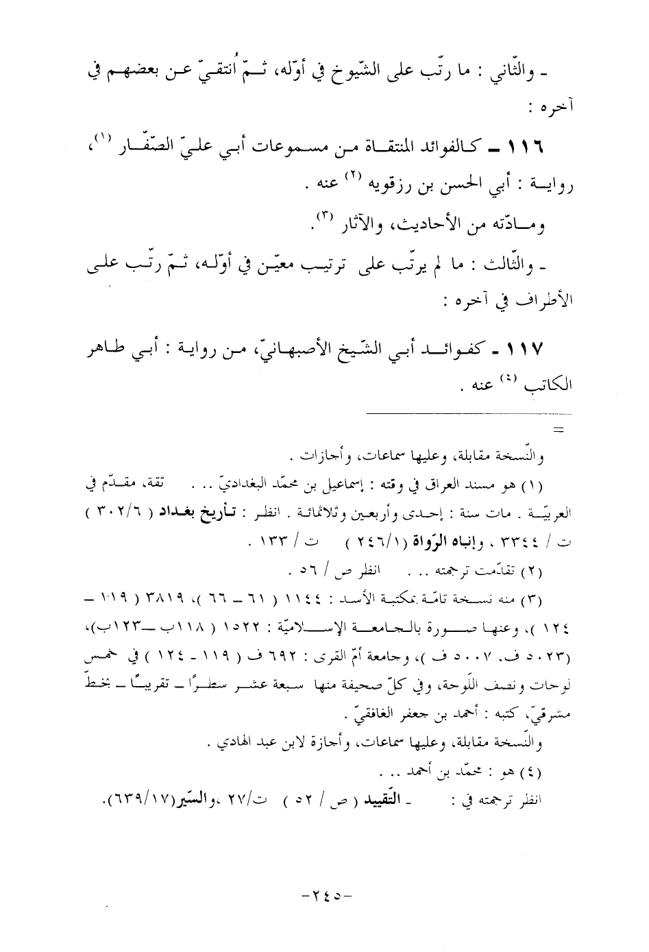 116- كالفوائد المنتقاة من مسموعات أبي عليّ الصّفّار (¬1) ، رواية: أبي الحسن بن رزقويه (¬2) عنه. ومادّته من الأحاديث، والآثار (¬3) .