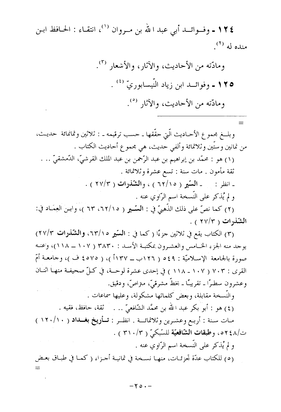 125- وفوائد ابن زياد النّيسابوريّ (¬4) . ومادّته من الأحاديث، والآثار (¬5) .