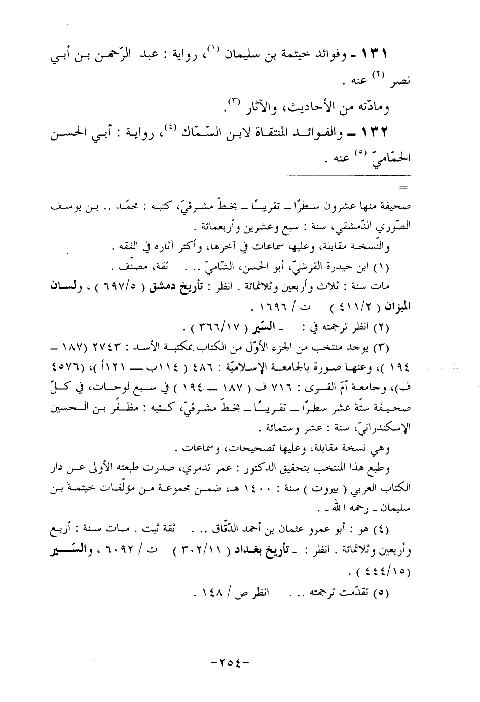 132- والفوائد المنتقاة لابن السّمّاك (¬4) ، رواية: أبي الحسن الحمّاميّ (¬5) عنه.