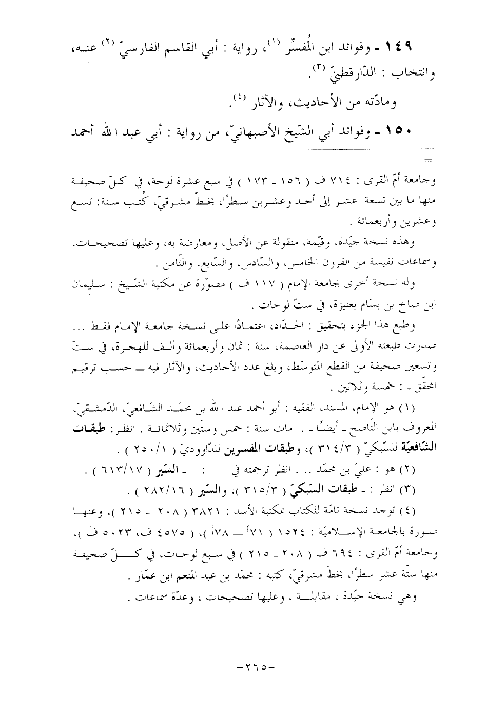 149- وفوائد ابن المُفسِّر (¬1) ، رواية: أبي القاسم الفارسيّ (¬2) عنه، وانتخاب: الدّارقطنيّ (¬3) . ومادّته من الأحاديث، والآثار (¬4) .