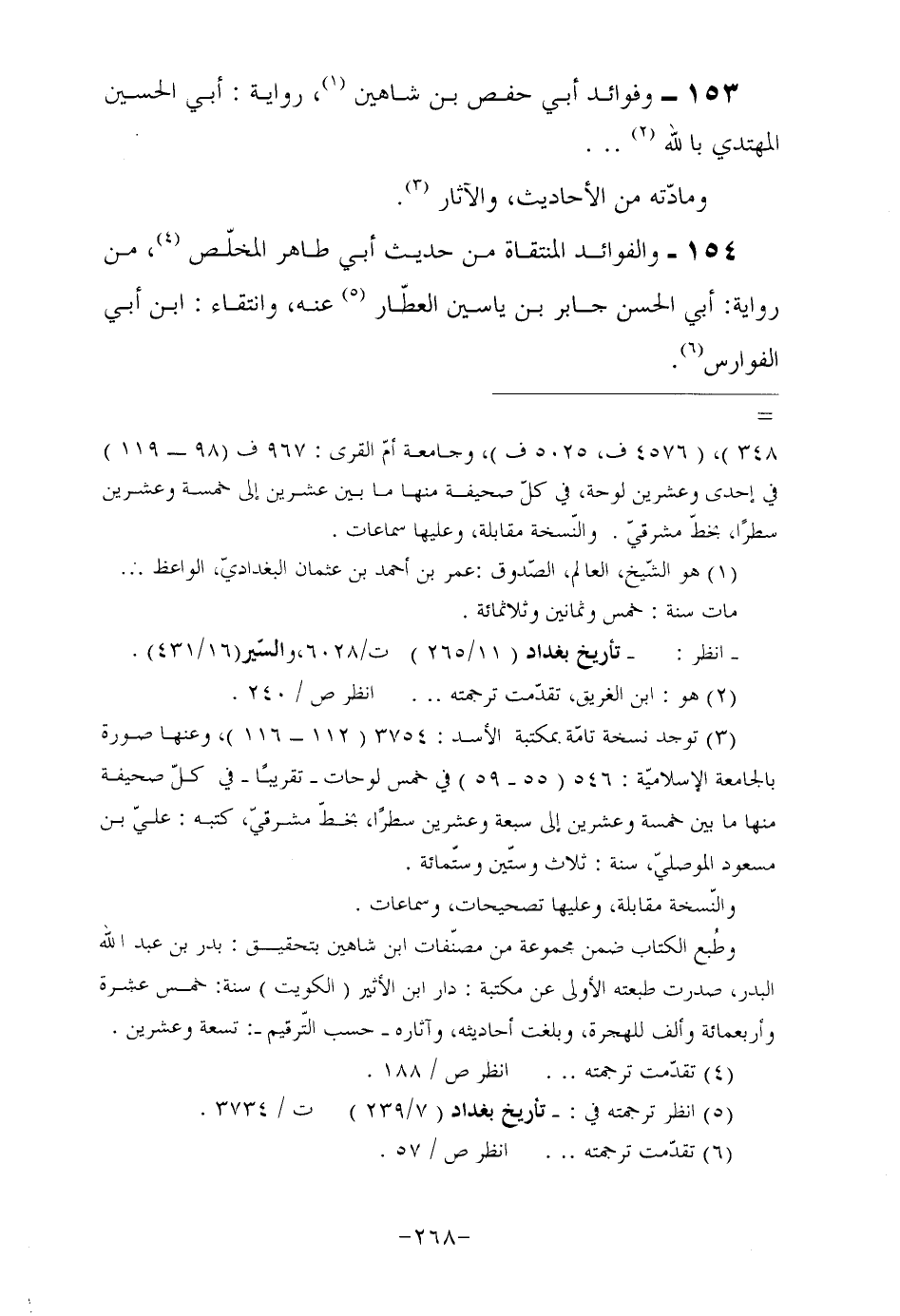 153- وفوائد أبي حفص بن شاهين (¬1) ، رواية: أبي الحسين المهتدي بالله (¬2) ... ومادّته من الأحاديث، والآثار (¬3) .