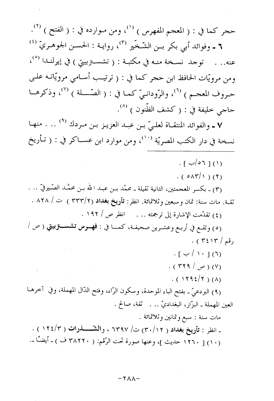 6- وفوائد أبي بكر بن الشّخّير (¬3) ، رواية: الحسن الجوهريّ (¬4) عنه ... توجد نسخة منه في مكتبة: (تشستربيتي) في إيرلندا (¬5) ، ومن مرويّات الحافظ ابن حجر كما في: (ترتيب أسامي مرويّاته على حروف المعجم) (¬6) ، والرّودانيّ كما في: (الصّلة) (¬7) ، وذكرها حاجي خليفة في: (كشف الظّنون) (¬8) .