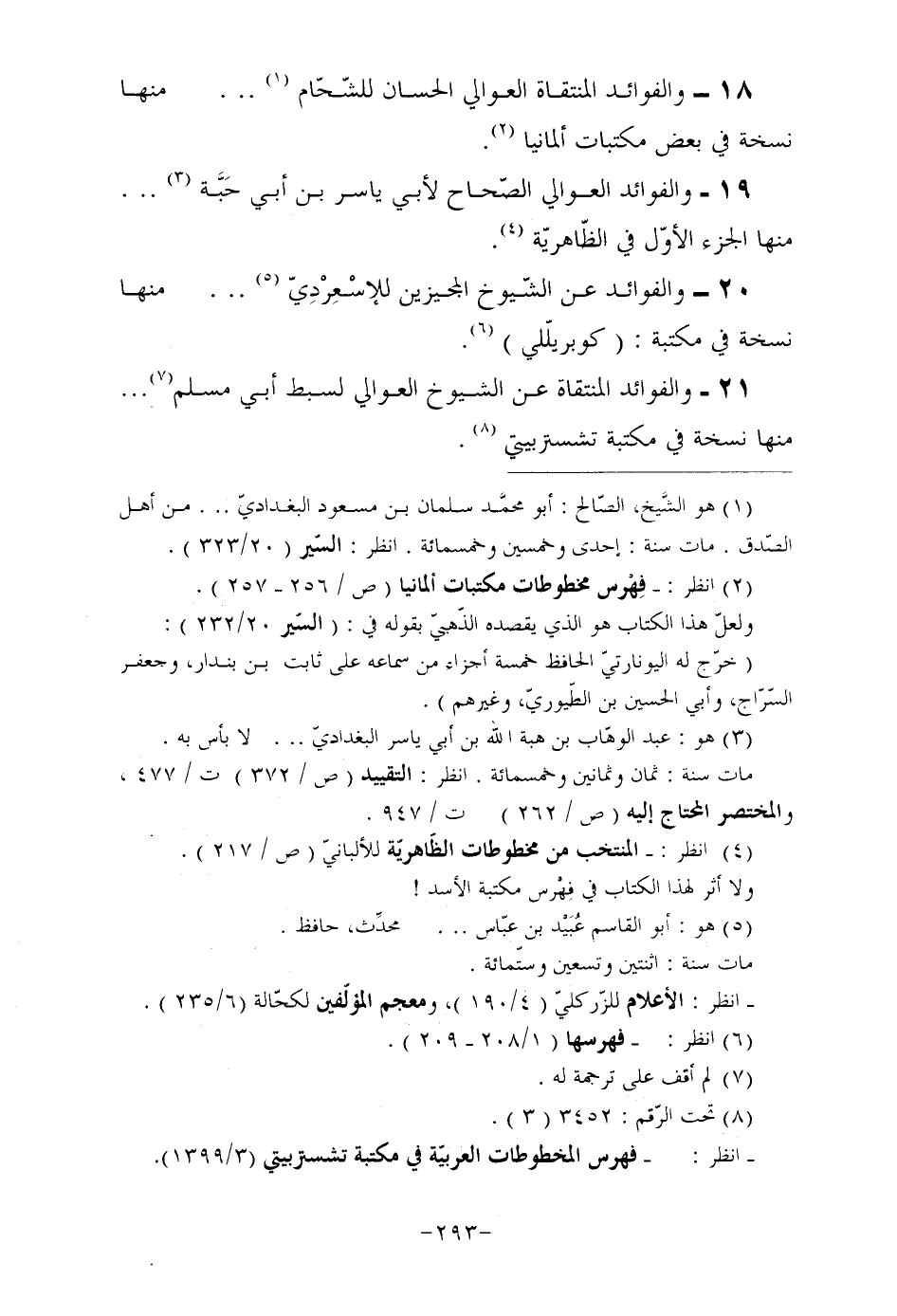 21- والفوائد المنتقاة عن الشيوخ العوالي لسبط أبي مسلم (¬7) ... منها نسخة في مكتبة تشستربيتي (¬8) .