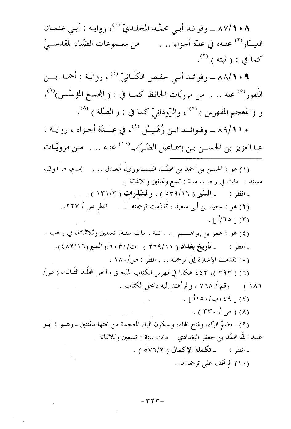 109/88- وفوائد أبي حفص الكتّانيّ (¬4) ، رواية: أحمد بن النّقور (¬5) عنه ... من مرويّات الحافظ كما في: (المجمع المؤسَّس) (¬6) ، و (المعجم المفهرس) (¬7) ، والرّودانيّ كما في: (الصِّلة) (¬8) .