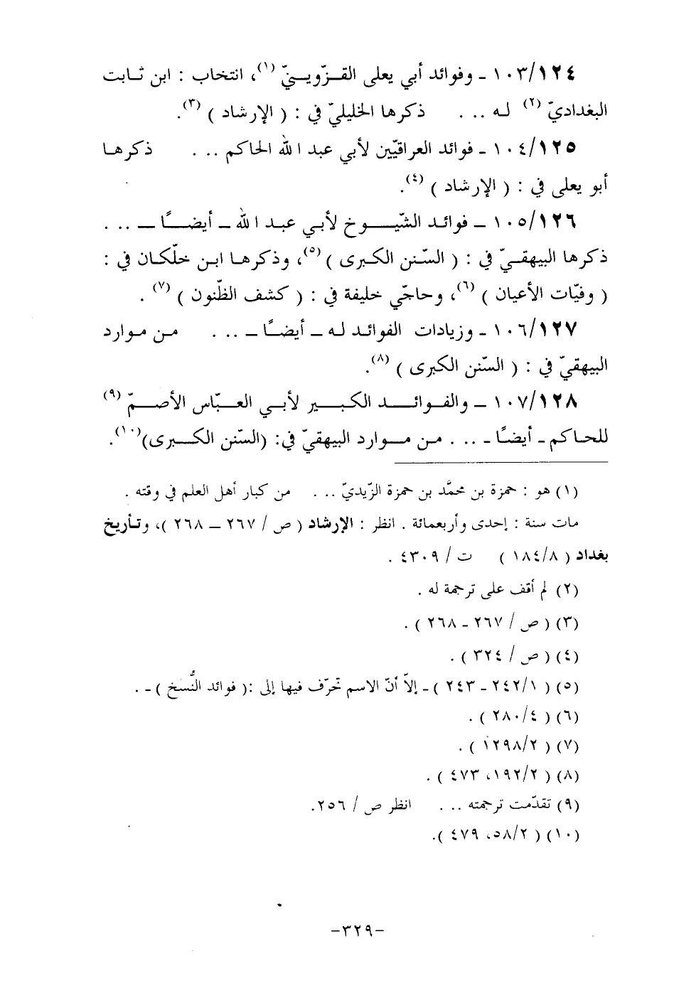 127/106- وزيادات الفوائد له أيضا ... من موارد البيهقيّ في: (السّنن الكبرى) (¬8) .