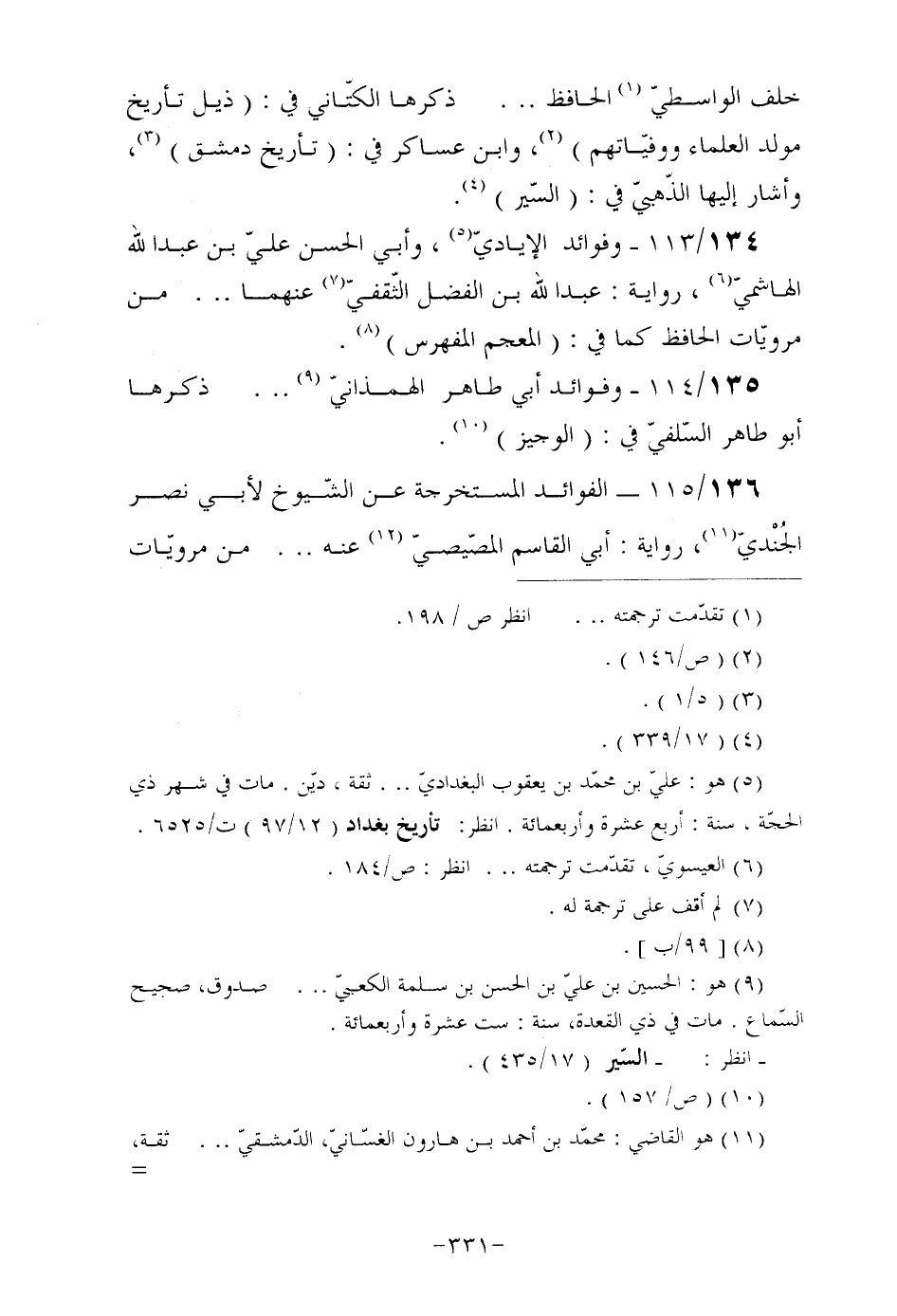 135/114- وفوائد أبي طاهر الهمذانيّ (¬9) ... ذكرها أبو طاهر السّلفيّ في: (الوجيز) (¬10) .