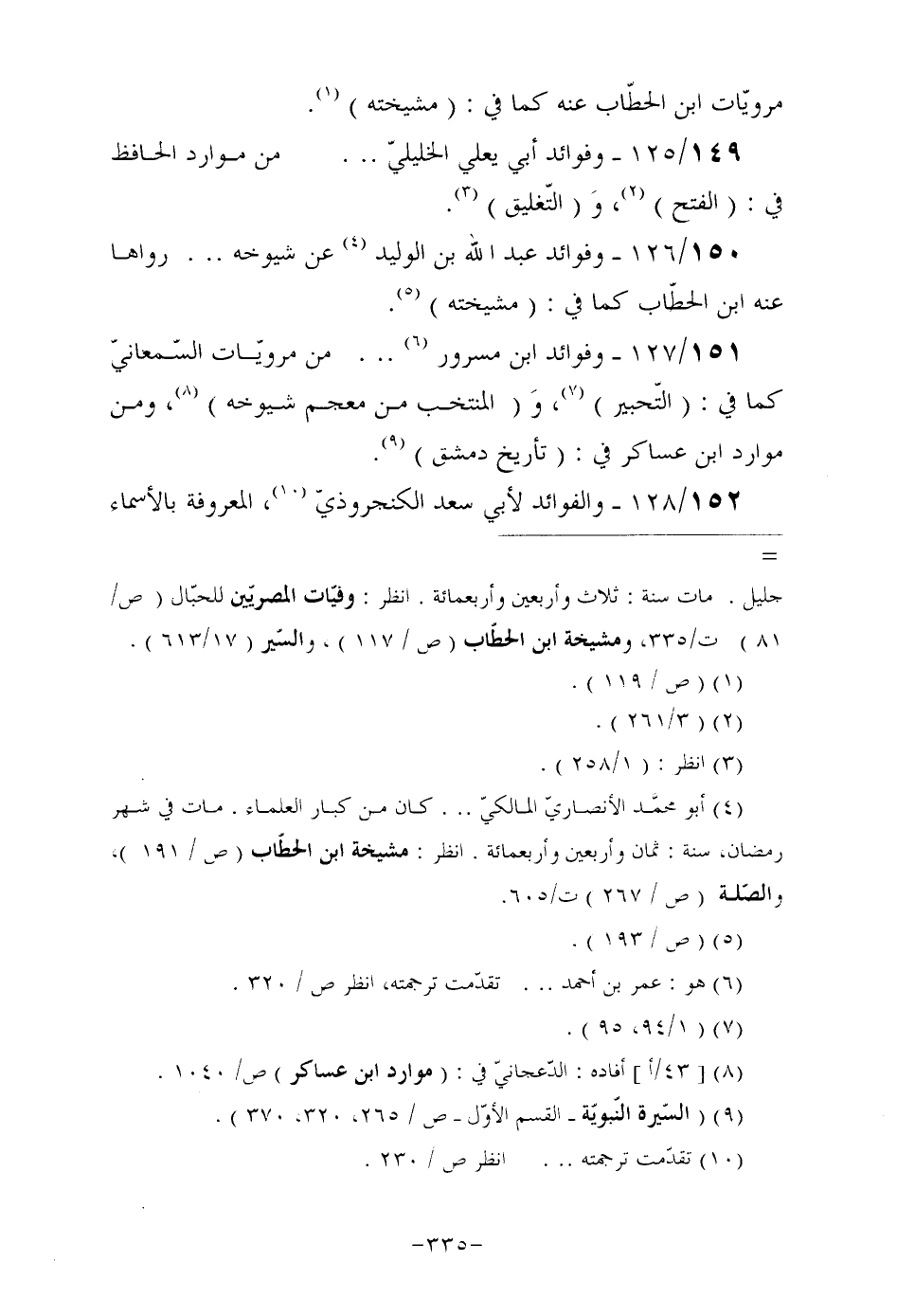 151/127- وفوائد ابن مسرور (¬6) ... من مرويّات السّمعانيّ كما في: (التّحبير) (¬7) ، و (المنتخب من معجم شيوخه) (¬8) ، ومن موارد ابن عساكر في: (تأريخ دمشق) (¬9) .