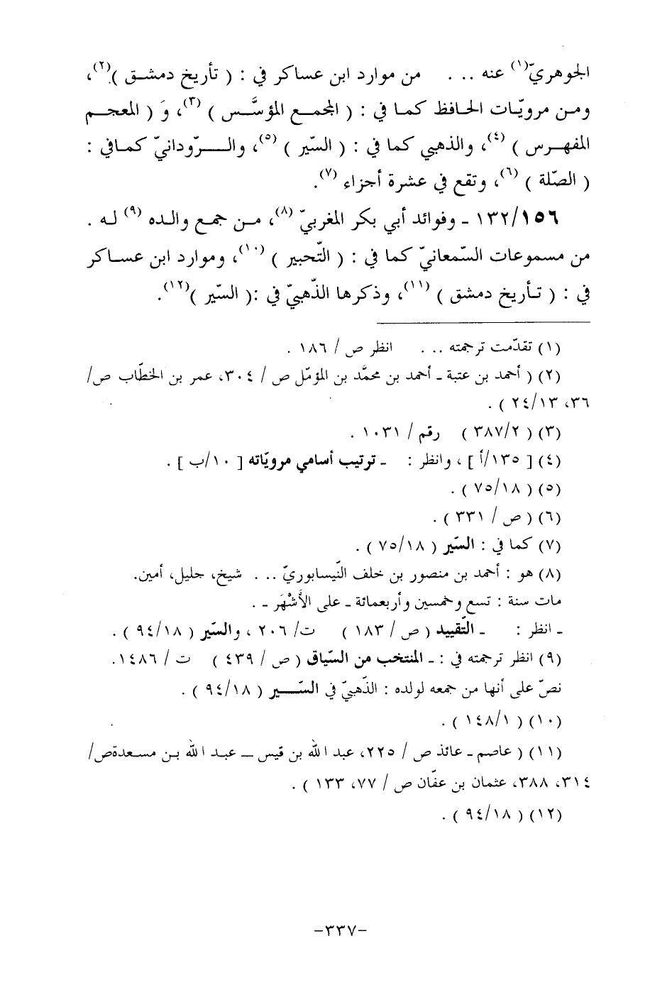 156/132- وفوائد أبي بكر المغربيّ (¬8) ، من جمع والده (¬9) له. من مسموعات السّمعانيّ كما في: (التّحبير) (¬10) ، وموارد ابن عساكر في: (تأريخ دمشق) (¬11) ، وذكرها الذّهبيّ في: (السّير) (¬12) .