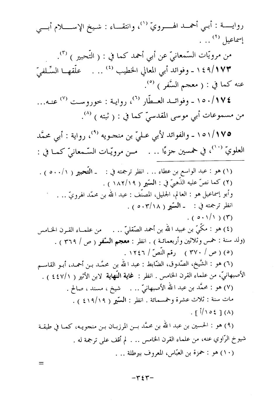 175/151- والفوائد لأبي عليّ بن منجويه (¬9) ، رواية: أبي محمَّد العلويّ (¬10) ، في خمسين جزءًا ... من مرويّات السّمعانيّ كما في: