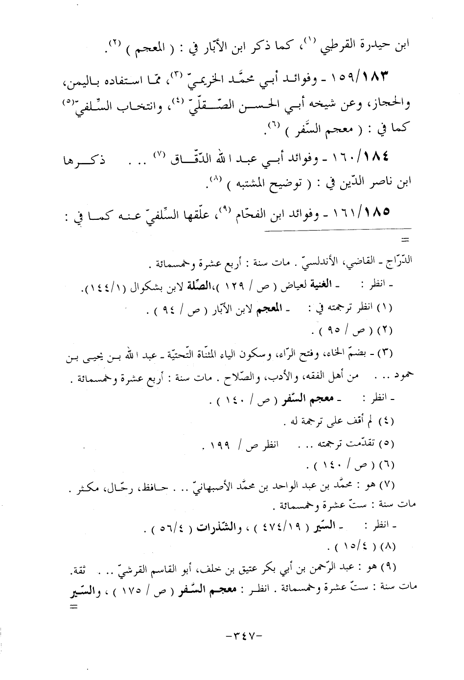 183/159- وفوائد أبي محمَّد الخريميّ (¬3) ، ممّا استفاده باليمن، والحجاز، وعن شيخه أبي الحسن الصّقلّيّ (¬4) ، وانتخاب السِّلفيّ (¬5) كما في: (معجم السَّفر) (¬6) .