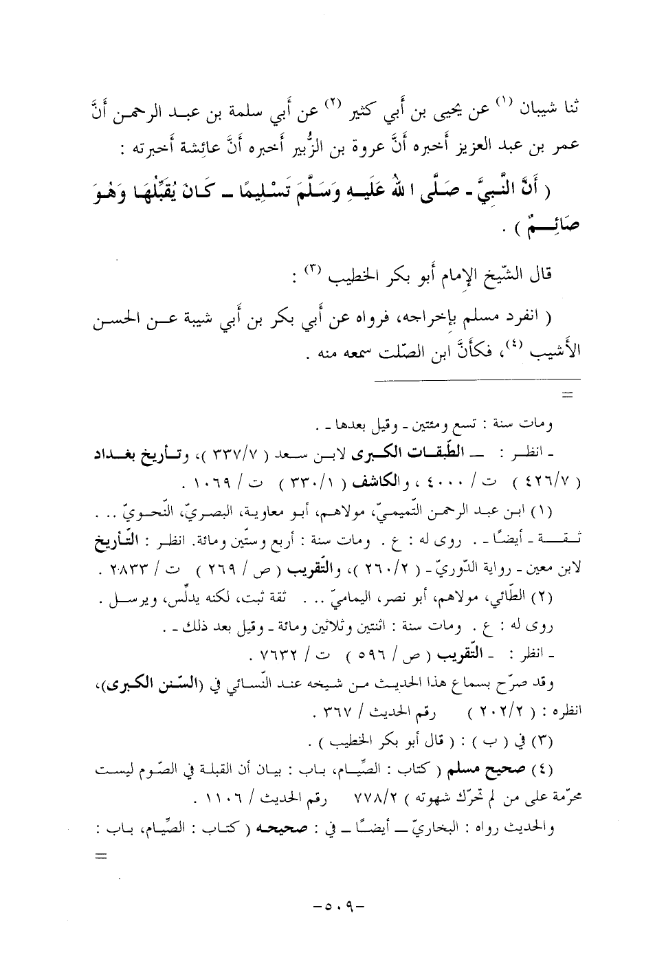 (¬4) صحيح مسلم (كتاب: الصِّيام، باب: بيان أن القبلة في الصّوم ليست محرّمة على من لم تحرّك شهوته) 2/778 رقم الحديث/1106.