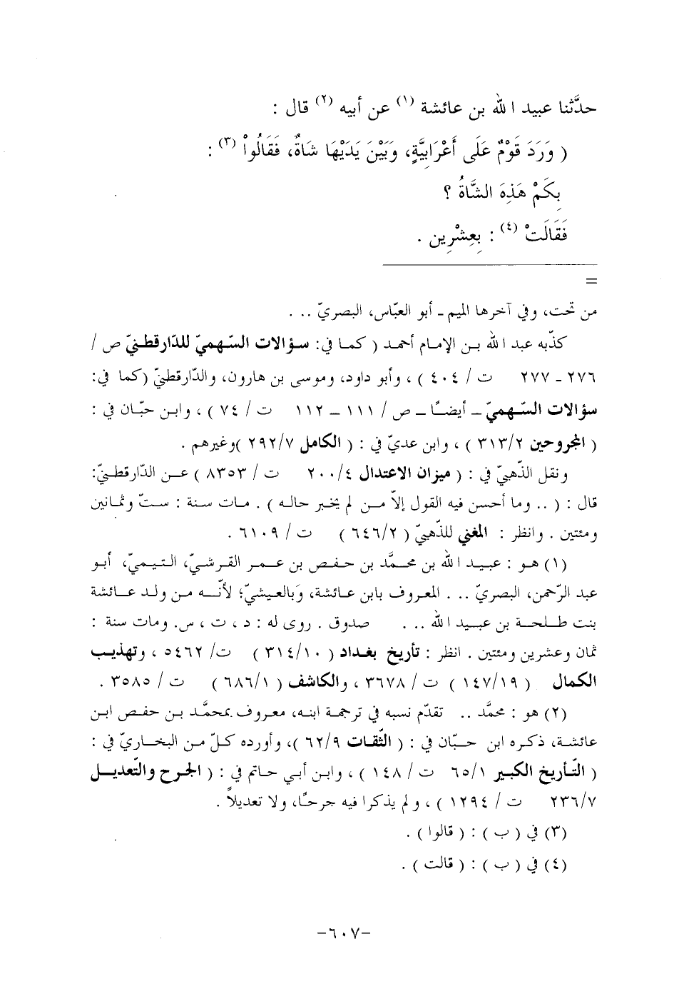 حدَّثنا عُبَيْدُ اللَّهِ بْنُ عَائِشَةَ (¬1) عن أبيه (¬2) قال: "وَرَدَ قَوْمٌ عَلَى أَعْرَابِيَّةٍ، وَبَيْنَ يَدَيْهَا شَاةٌ، فَقَالُواْ (¬3) : بِكَمْ هَذِهَ الشَّاةُ؟ فَقَالَتْ (¬4) : بِعِشْرِين.