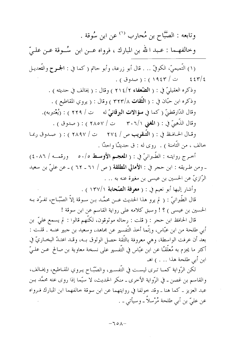 قال الطّبرانيّ: "لم يرو هذا الحديث عن محمَّد بن سوقة إلاّ الصّبّاح، تفرّد به الحسين بن عيسى"؟! وسبق كلامه على رواية القاسم عن ابن سوقة!
