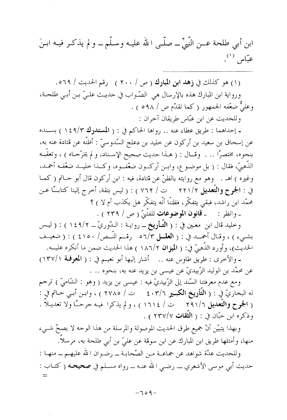 ورواية ابن المبارك هذه بالإرسال هي الصّواب في حديث عليّ بن أبي طلحة، وعليٌّ ضعّفه الجمهور (كما تقدّم ص/598) .
